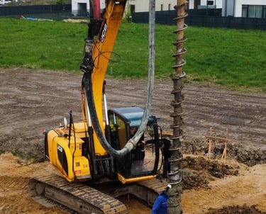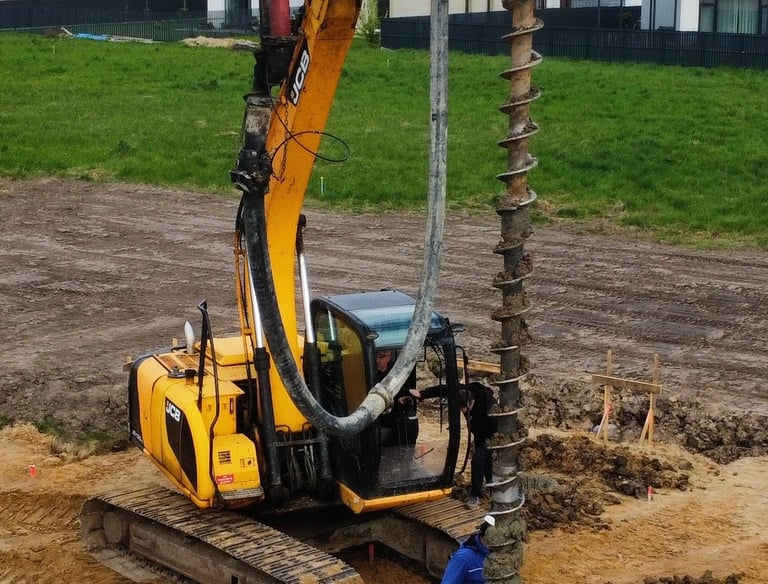 Specializuoti ištisinio sraigtinio gręžimo darbai 300/400 mm pločio. Patikimi sprendimai sudėtingoms grunto sąlygoms ir giliems pamatams individualiai statybai.